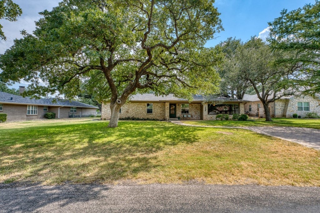 Welcome to 109 Flamingo Circle located in the beautiful and peaceful City of Highland Haven, a community nestled on the banks of fabulous Lake LBJ. This 3 bedroom and 2 bath home has .39 acres and goes street to street. This roomy lot has 3 live oak trees, a well for watering the lawn and a large garage that will accommodate 3 vehicles and still has room for a storage/workshop area. The home features open living accented with a fireplace, large dining area, nice kitchen with built in wine racks, granite countertops and a butcher block island. A large den/gameroom is just off the open living area and has a huge picture window to bring in an abundance of light. The owner`s bedroom has its own bathroom with a double sink and custom tile shower. There two additional bedrooms and a bath with a tub. If you enjoy the outdoors you can enjoy the sitting area on covered front porch or the large patio in the expansive backyard. This is a chance for you to have an escape from the city or a fulltime home with access to Lake LBJ. There is a City park 1 street over with a boat ramp and covered picnic area.