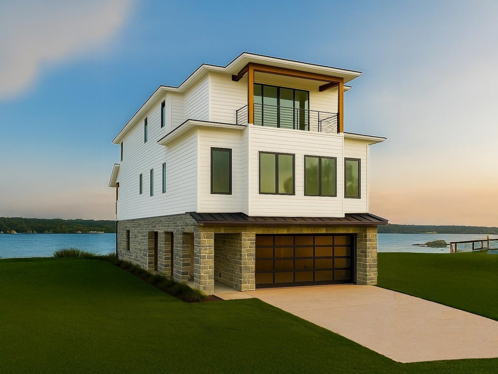 516 Lake Street is an exceptional waterfront home currently in the construction phase within The Drace, Kingsland's new luxury gated waterfront community nd is expected to be completed by Oct. 1st. Spanning 4,028 sq. ft. with 5 bedrooms and 5.5 bathrooms, the home boasts an elevator, an electric vehicle charging station and a six-camera security system for peace of mind whether you are home or away. The main floor showcases an open floor plan that enhances the flow of space throughout the living and dining areas, highlighted by floor-to-ceiling windows and sliding doors that connect the indoor and outdoor environments. This level also includes two guest suites and a wet bar area for entertaining. Upstairs, you'll find the luxurious primary suite, which boasts a private balcony, alongside a guest suite and a cozy bunk room, both featuring convenient en-suite baths. This level also features a lounge area and a private balcony, offering ample space to unwind after a long day on the lake. The private boat dock guarantees access to the lake, while the outdoor features—including a private pool, an outdoor kitchen, and inviting living spaces—create the perfect environment for memorable gatherings. The Drace community elevates the experience with outstanding amenities, including a marina, boat launch, and extra parking for vehicles and boat trailers, making it an ideal choice for those interested in operating as a short-term rental. What are you waiting for?