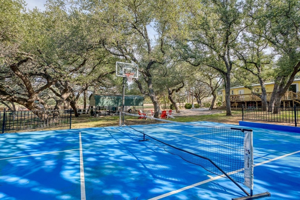 This charming 3 bedroom 2 bath main home boasts open concept living along with lake living. With 80ft of Lake LBJ frontage sits the guest apartment that is fully equipped. It is perfect for guests or extra space for your Short Term Rental investment. The pickle ball court in the back yard adds extra entertainment for everyone. The electric boat lift offers easy storage for lake toys and just minutes from open water on the navigable channel that offers a great boating expierence. The tree lined lot is shaded and great for entertaining. This full time living or lake front investment is ready to go!