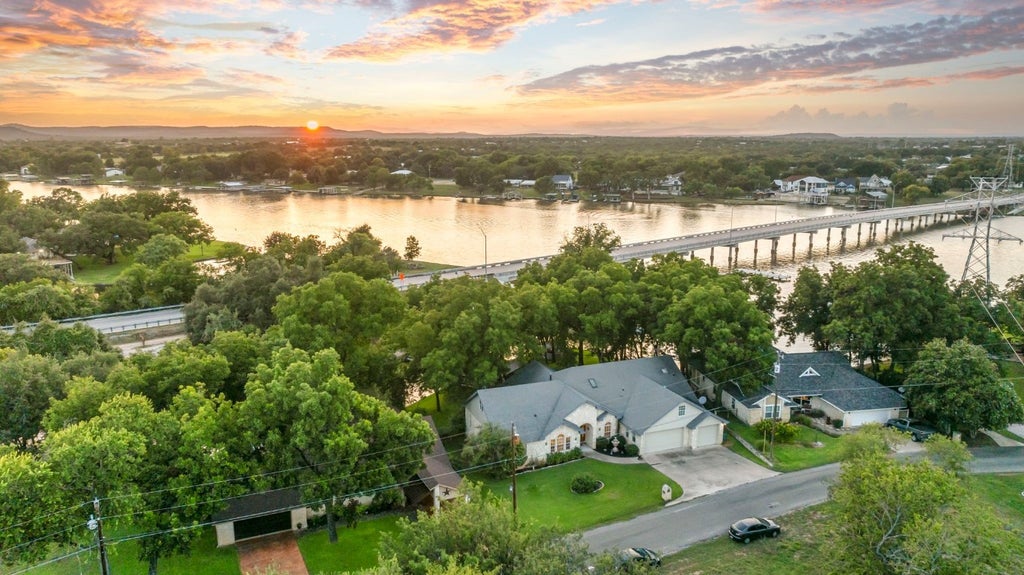 Enjoy everything Lake LBJ has to offer. Spacious, updated home on a double lot with open water views. Hop on your boat and be on the open water inseconds. Home is perfect for family lake life with an open floorpan, large kitchen, two owners suites, guest room with ensuite bath and an office. Upstairs isthe sprawling finished attic with a large central area perfect for a pool table and game room. 2 alcoves off the main attic space offer extra sleeping spacesand could be closed off to create traditional bedrooms. Upstairs could easily sleep 8-12 guests and has it's own kitchenette and full bath, plus giant storageclosets. Quiet location across from the greenbelt. 180 feet of water frontage. Backyard gazebo is a charming spot for coffee or cocktails. Boat dock with twostalls and electric lift. One hour from Austin, 1 hour 45 minutes from San Antonio. Realtor.com lists property as AE Flood Zone- only a small portion of the lotalong the water is in the flood zone. The home does not sit in the flood zone nor has it ever flooded.