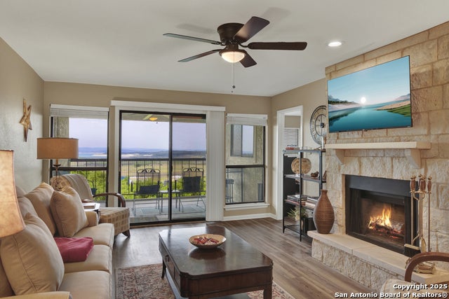 Discover the epitome of lake living with this magnificent 2-bedroom, 2-bathroom condominium, offering breathtaking 180-degree views of Canyon Lake. Nestled in the coveted Cougar Ridge Condos on the north side of Canyon Lake, Texas, this home is a true gem, boasting an array of upgrades. Here's a glimpse of what awaits: Enjoy the elegance and durability of new vinyl flooring throughout the entire condo. Both bathrooms and the kitchen have new quartz countertops, new shower and tile, complemented by custom vanities and toilets. Recessed lighting and new ceiling fans, and fully repainted to provide a fresh, contemporary look. In addition, a new hot water heater, new microwave, stunning new stone fireplace, new roof installed within the last two years ensures peace of mind. Unmatched Location and Amenities! Beyond the condo's updated interior, the location offers a wealth of activities and conveniences. Take a refreshing dip in the community's sparkling pool or take a short drive to Jacob's Creek Park. The Canyon Lake Marina and Brookshire Brother's located just across 306. Enjoy tubing on the Guadalupe River, dining at popular restaurants, and exploring local bars and shops. Located only 20 minutes from New Braunfels and Gruene, and a short drive to Wimberley, where you can experience Market Days, the scenic Blanco River, Jacob's Well, and Blue Hole. A 35-minute drive to the San Marcos Outlet malls promises endless shopping opportunities. Embrace the idyllic lake life and make this stunning condo your new home. With its combination of luxurious upgrades, prime location, and spectacular views, this property is sure to be in high demand. Schedule your showing today before this spectacular opportunity slips away!