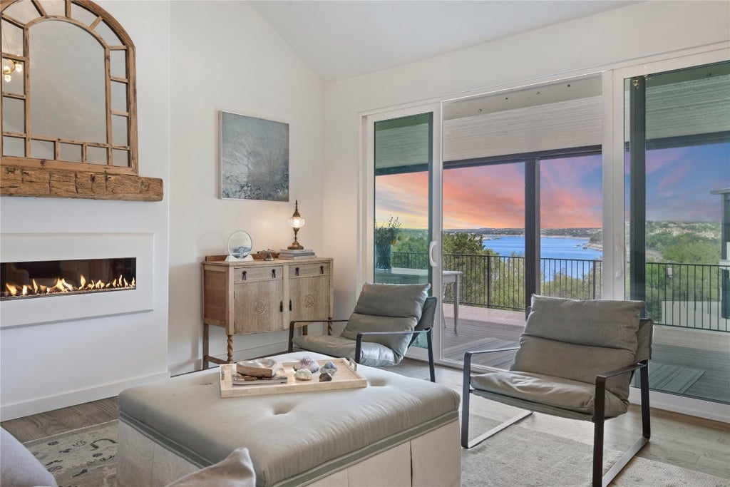 PEACE, SERENITY & LOCATION ~ A WATERFRONT MASTERPIECE ON LAKE TRAVIS! This exquisite waterfront property on Lake Travis, located in the highly-rated Lake Travis School District, offers the quintessential lakeside lifestyle located one cove over from Rough Hollow. Enjoy direct access to the water from your private dock, allowing for easy enjoyment of boating, swimming, paddle boarding or just enjoying the impeccable view. The French-style architecture of the home completely remodeled in 2022 adds a touch of European elegance to the property, while the cliffside setting provides breathtaking scenery. You'll also appreciate the peace of mind that comes with a move-in-ready home, lower property taxes, reasonable HOA fees, and manageable utility costs which contribute to an overall appealing investment. This home truly offers a perfect blend of desirable features in an idyllic Lake Travis location and is perfect for entertaining. You must see in person to truly appreciate the beauty of this home. So quiet you might find yourself writing a novel or painting a sunset while soaking up the amazing views!
