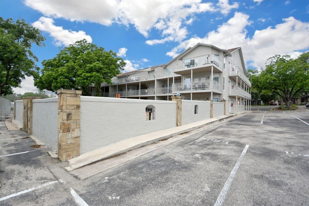 Escape to the perfect staycation with this marvelous fully furnished 2 bed/2 bath condo at the Waterwheel Resort Condominiums. Home has an open floor plan with a spacious living & dining area, fold out queen bed, electric fireplace, breakfast bar, and in unit stackable laundry. Overlooking the pool area with cascading rock water feature is the extended outdoor balcony. The building itself comes with an elevator for easier access to the top floor and private walkway. Enjoy the other community amenities including a second pool area with heated saline pool, 4 hot tubs, walking trail, BBQ pits, and private Guadalupe River front access. Waterwheel Resort Condominiums is conveniently located down the road from Schlitterbahn, Cypress Bend Park, near Downtown New Braunfels, Landa Park, and Wurstfest Grounds. This condo is also ideal for investors that want to rent out the unit throughout the year.