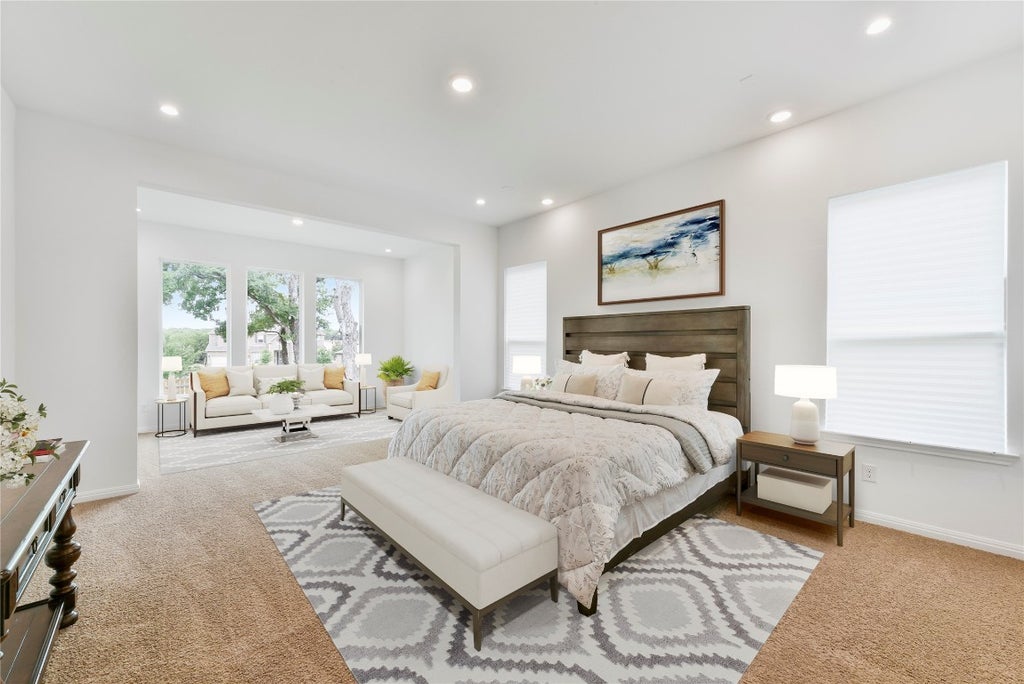 Stunning 6 Creeks Home on Prime Corner Lot — Loaded with Upgrades! Welcome to this nearly new, move-in-ready residence in the sought-after 6 Creeks community, where peaceful Hill Country living meets upscale comfort and convenience. Situated on a 0.28-acre corner lot framed by oaks and lush views, this beautifully maintained home features over $150,000 in builder upgrades and thoughtful modern design. Step through the grand entry with soaring 20-foot ceilings into a bright, open layout built to impress. A dramatic 15-foot sliding glass door fills the space with natural light and opens to a private backyard with sunset views and a covered balcony plumbed for a gas grill—perfect for entertaining. The chef’s kitchen includes a gas cooktop, pot filler, double ovens, and expansive granite countertops. Upscale lighting, custom electrical (extra outlets, EV charger, and hot tub prewiring), and in-wall speaker prewiring elevate the experience throughout. The 3-car garage offers 10-foot ceilings, upgraded overhead doors, and durable luxury vinyl plank flooring—car-compatible and ideal for a home gym or studio. One bay features a high-end gym setup available for purchase. Additional highlights include a whole-house water filter and softener with UV, plus two tankless water heaters. Upstairs, enjoy a prewired media room for movie nights, a game room, and spacious bedrooms with a Jack and Jill bath featuring granite countertops. The four-sided brick exterior, accented with Texas limestone, adds timeless curb appeal. Living in 6 Creeks comes with resort-style amenities, including a pool, clubhouse, pickleball courts, playgrounds, a fishing pond, and scenic trails—all just minutes from shopping and a short drive to Austin. This one checks every box. Welcome home! (Note: Some images have been digitally enhanced with virtual home furnishings.)