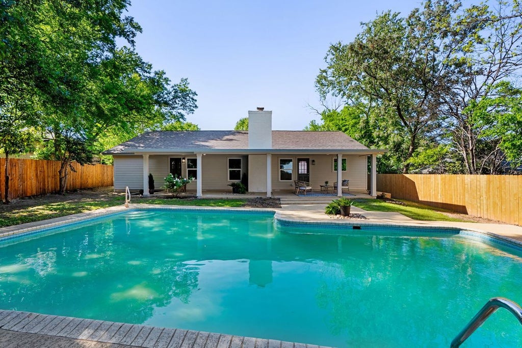 Step into timeless style and modern comfort in this beautifully remodeled mid-century modern home with expansive pool in the heart of Quail Creek. With no HOA, this home would be great short-term rental or amazing oasis in central Austin. Nestled in one of Central Austin’s most established neighborhoods, this stunning property seamlessly blends indoor and outdoor living spaces with iconic architectural elements. Featuring an open-concept layout, vaulted ceilings, large brick fireplace, and floor-to-ceiling windows, the home is flooded with natural light. The gourmet kitchen boasts quartz countertops, custom soft-close cabinetry, bar, and stainless steel appliances. Outdoors, a private oasis awaits. Enjoy the large outdoor living area with a sparkling oversized pool. Additional features include 3 spacious bedrooms including a luxurious primary suite with spa-like walk-in shower, dual vanity and private patio entrance. The home is complete with two living areas, private dining room, and outdoor breakfast nook. Upgrades are numerous including new siding, 2 year old roof, upgraded plumbing, lighting and plumbing fixtures, luxury vinyl plank flooring, doors, hot water heater, fence and more. Located minutes from The Domain, Q2 Stadium, major employers, and highways this home offers convenience, charm, and character in one of Austin’s most desirable pockets. Ask about 0% down payment options.