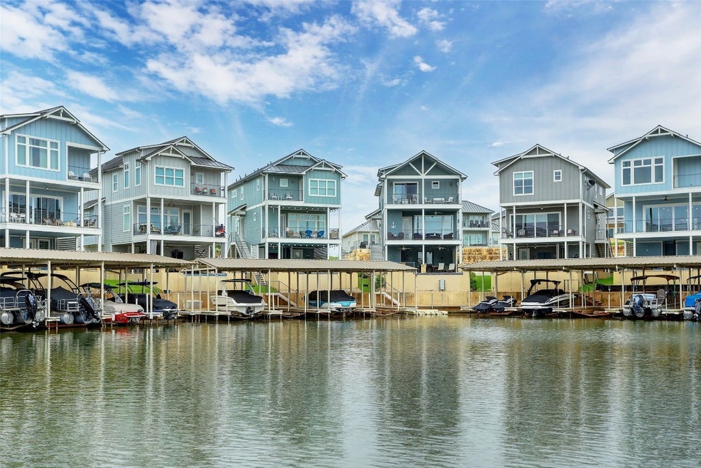 This luxury Lake LBJ waterfront home offers everything you could want in a lake home—space to sleep 10, high-end finishes, a large gourmet kitchen, an open floor plan, a pool, and multiple levels with views of the lake. There are three spacious bedrooms with ensuite baths, plus four built-in bunks that can easily accommodate family and guests. The beautifully appointed kitchen with quartz counters and top-of-the-line stainless appliances is the perfect place to gather. Or simply relax on a covered patio and cook with the built-in outdoor kitchen or sit in the pool on your waterfront patio at the end of the day. This must-see home is offered fully furnished. Easy access to the Colorado arm of Lake LBJ with a neighborhood boat ramp, and a boat slip right out the door in the community marina. The boat slip is a separate lease agreement that renews in May 2025. The community offers an amenity center, pickleball court, sand volleyball, tether ball, and a community pool. Great as a primary home, or a getaway home to enjoy weekends on the lake, where short-term rentals are also allowed. There are also multiple storage closets with locks. HOA dues include access to all amenities as well as lawn care, trash, and landscaping.